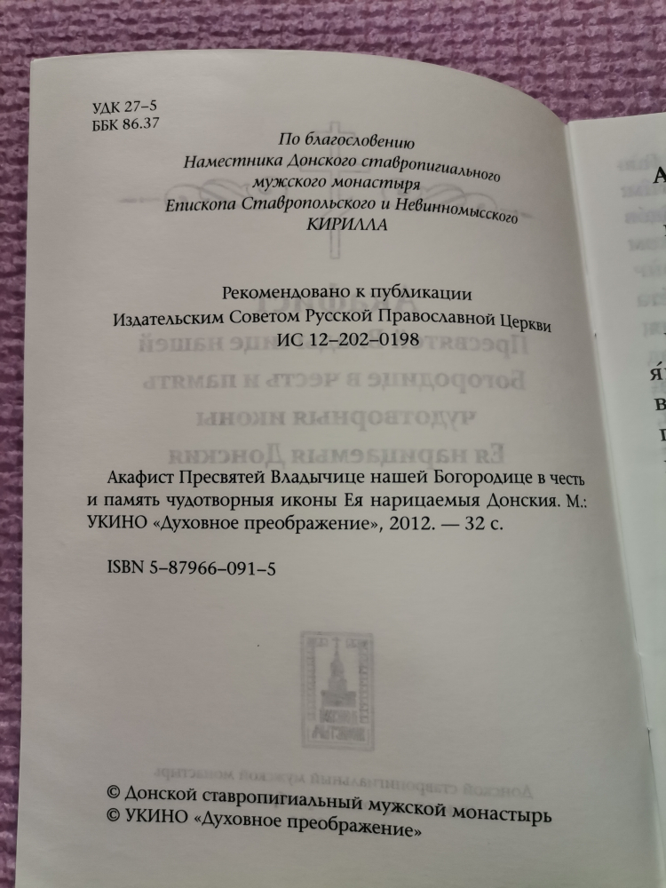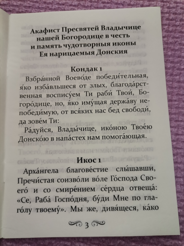 Издание включает в себя акафист Пресвятей Владычице нашей Богородице в честь и память чудотворныя иконы Ея нарицаемыя Донския. Пред иконой Пресвятой Богородицы "Донская" молятся об избавлении от иноплеменных и о сохранении Российской державы, о помощи православному русскому воинству, в трудные для России времена.