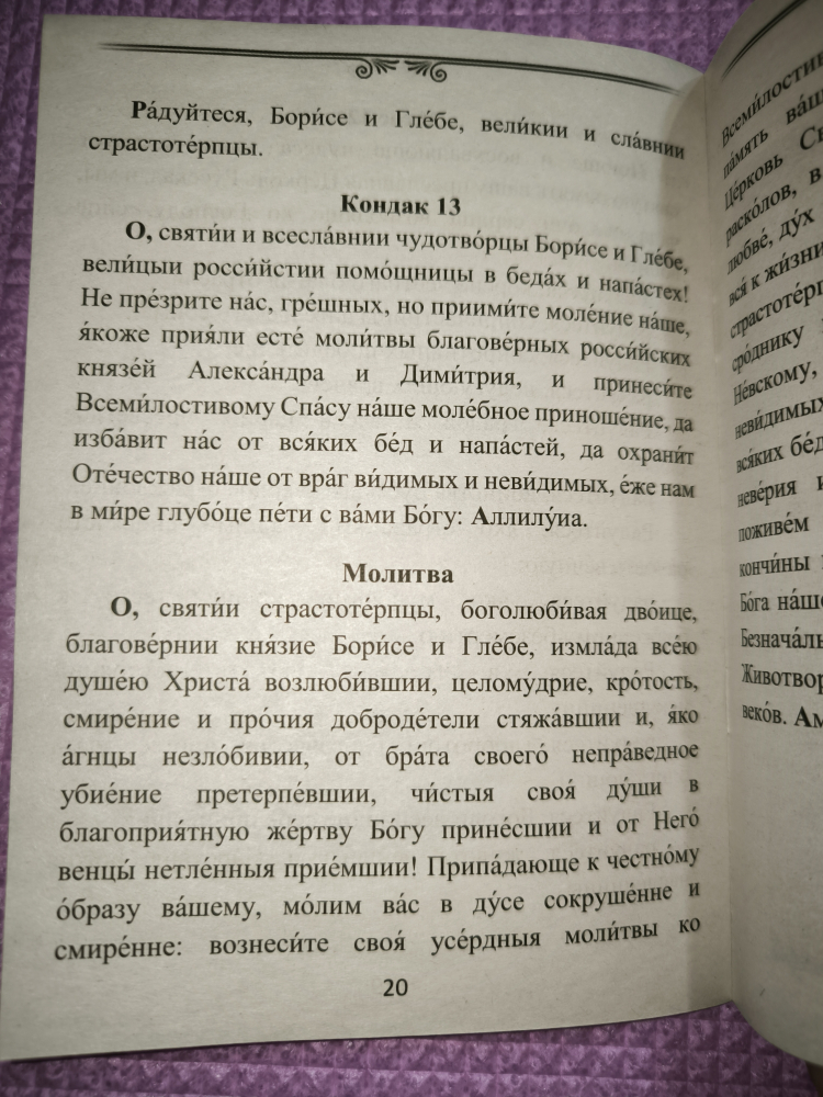 Святые благоверные князья-страстотерпцы Борис и Глеб - помогают верующим избавиться от болезней опорно-двигательного аппарата, способствуют примирению враждующих, являются покровителями чистоты и целомудрия. При молитве святым страстотерпцам Борису и Глебу получают исцеления от, казалось бы, неизлечимых недугов. Через икону обращаются с молитвой о спасении души близкого или знакомого человека, защите от нечистой силы, о мире на Российской земле.