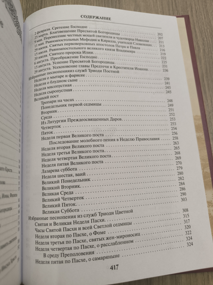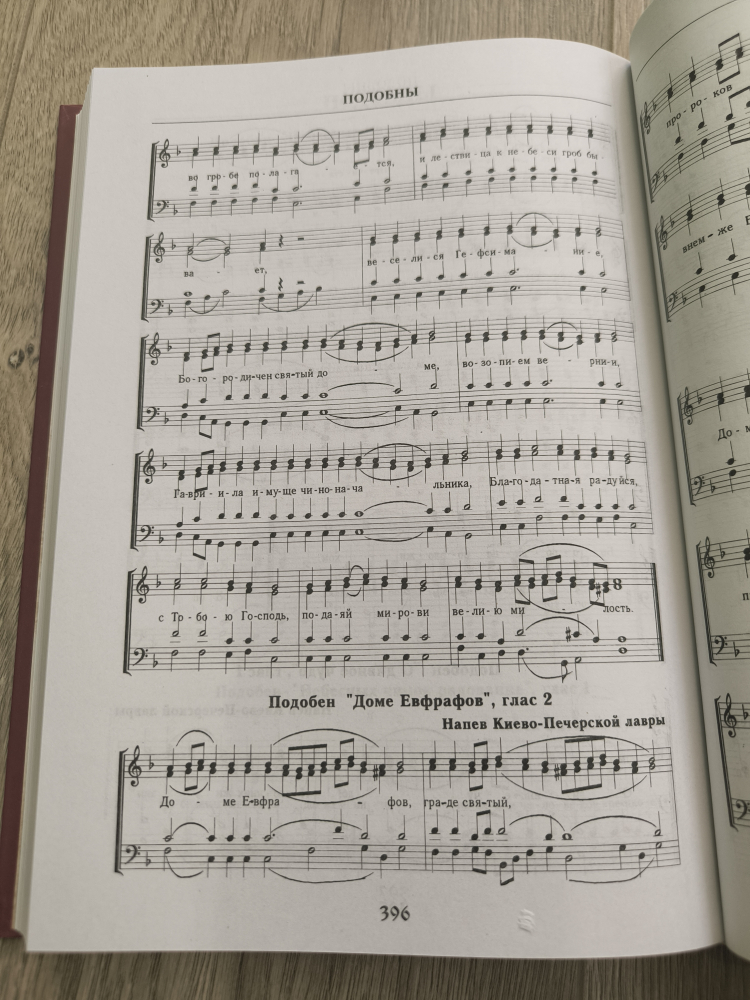 Нотный материал сборника изложен на основе гласовых напевов Троице-Сергиевой Лавры и содержит в себе Богородичны догматики и аллилуарии знаменного распева, напевы воскресных канонов 8-ми гласов, другие уставные песнопения. Как и предыдущее издание, сборник включает в себя подобны - специальные напевы 8-ми гласов. Несомненным достоинством книги является крупный, хорошо читаемый шрифт, облегчающий употребление богослужебного сборника на клиросе.