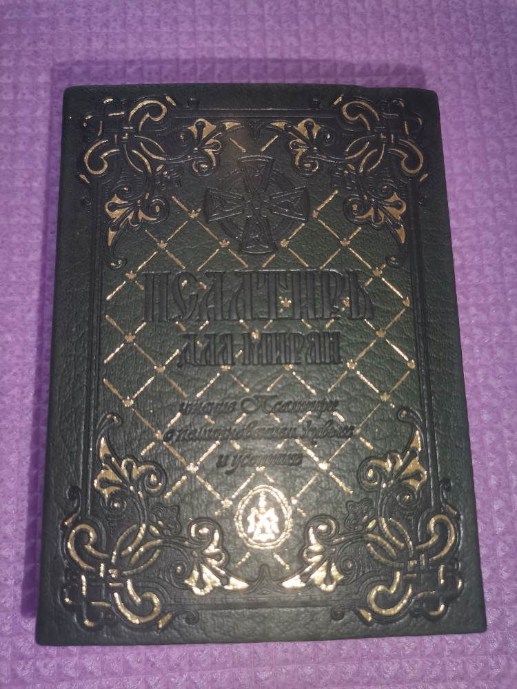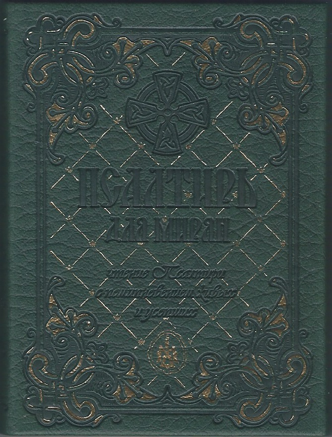 Псалтирь для мирян в переплете из кожи, с магнитным клапаном, на русском языке, в дополнение к традиционному составу включает в себя заупокойную литию, совершаемую мирянином дома и на кладбище, а также указание о чтении Псалтири по усопшему.