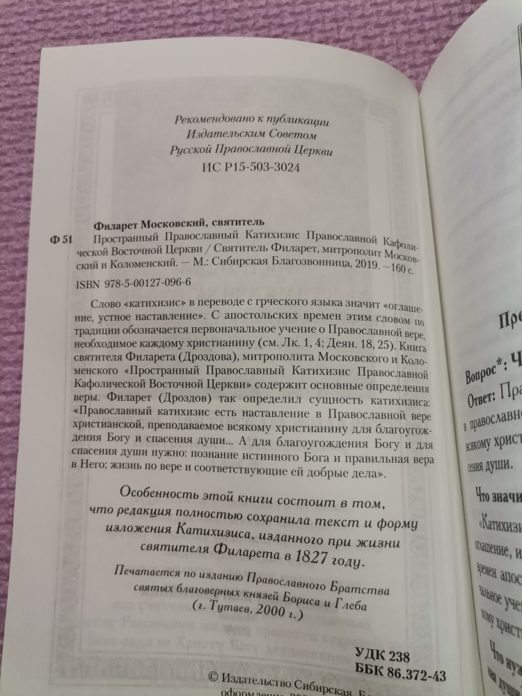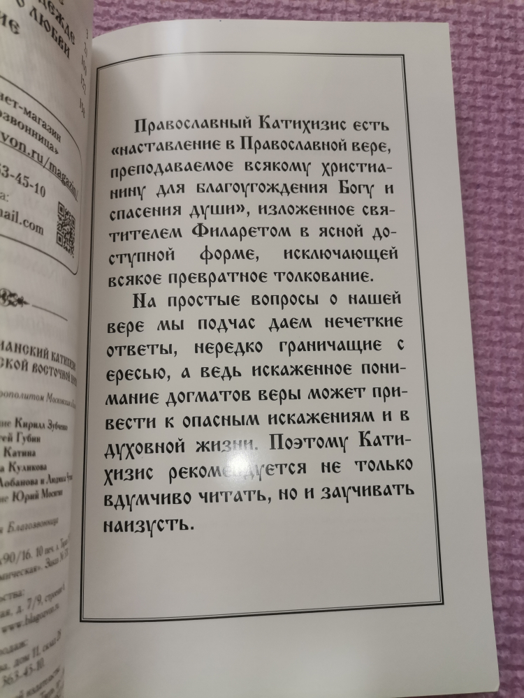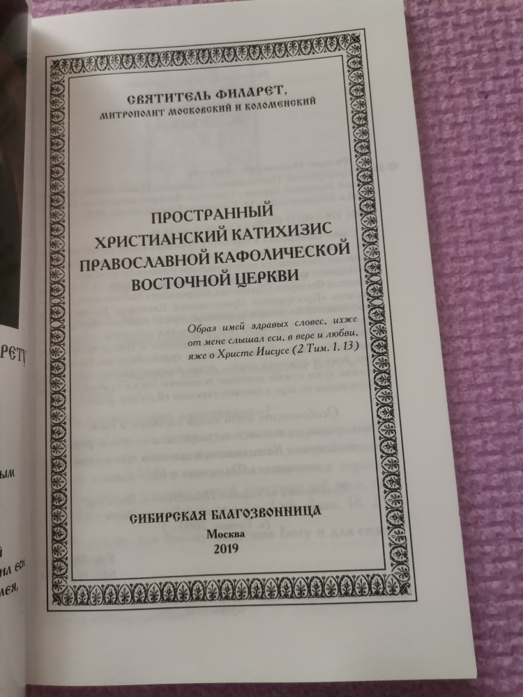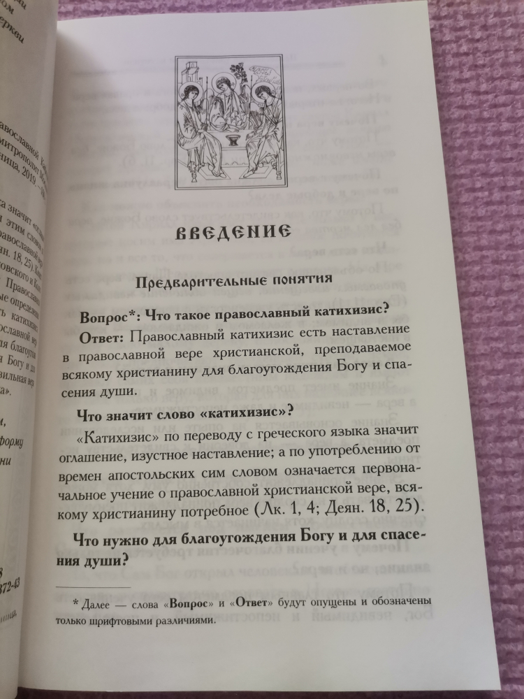 Слово "катихизис" в переводе с греческого языка значит "оглашение, устное наставление". С апостольских времен этим словом по традиции обозначается первоначальное учение о Православной вере, необходимое каждому христианину (см. Лк. 1, 4; Деян. 18, 25). Книга святителя Филарета (Дроздова), митрополита Московского и Коломенского "Пространный Православный Катихизис Православной Кафолической Восточной Церкви" содержит основные определения веры. Филарет (Дроздов) так определил сущность катихизиса: "Православный катихизис есть наставление в Православной вере христианской, преподаваемое всякому христианину для благоугождения Богу и спасения души… А для благоугождения Богу и для спасения души нужно: познание истинного Бога и правильная вера в Него; жизнь по вере и соответствующие ей добрые дела"