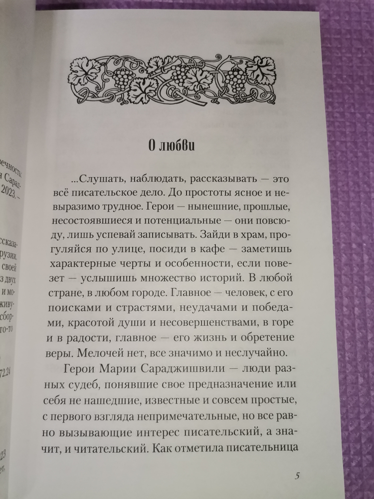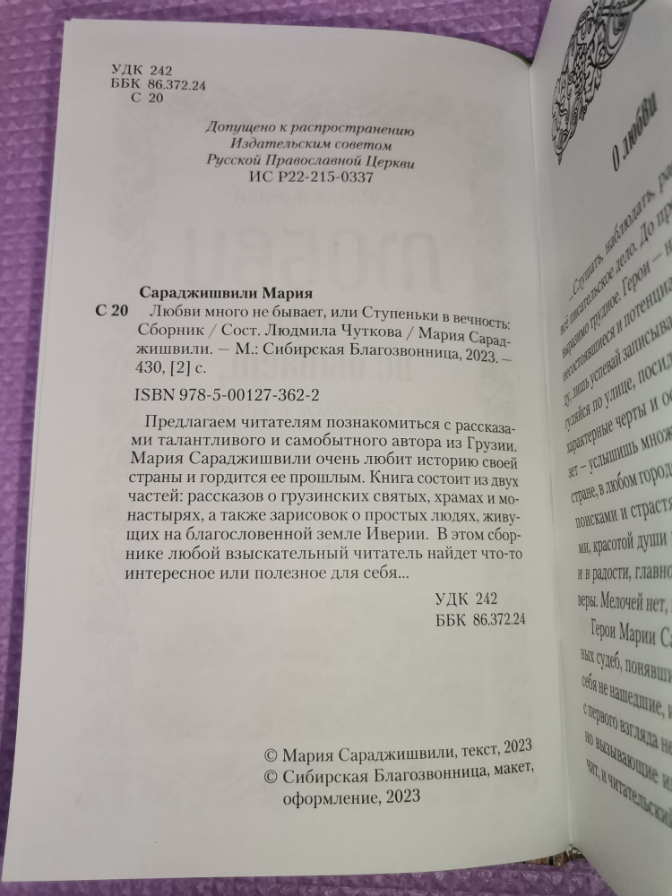 Предлагаем читателям познакомиться с рассказами талантливого и самобытного автора из Грузии. Мария Сараджишвили очень любит историю своей страны и гордится её прошлым. Книга состоит из двух частей: рассказов о грузинских святых, храмах и монастырях, а также зарисовок о простых людях, живущих на благословенной земле Иверии. В этом сборнике любой взыскательный читатель найдёт что-то интересное или полезное для себя…