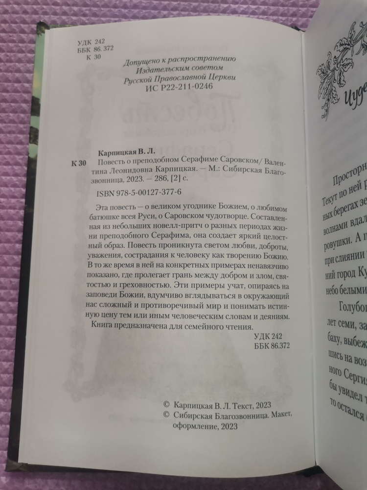 Эта повесть - о великом угоднике Божием, о любимом батюшке всея Руси, о Саровском чудотворце. Составленная из небольших новелл-притч о разных периодах жизни преподобного Серафима, она создает яркий целостный образ. Повесть проникнута светом любви, доброты, уважения, сострадания к человеку как творению Божию. В то же время в ней на конкретных примерах ненавязчиво показано, где пролегает грань между добром и злом, святостью и греховностью. Эти примеры учат, опираясь на заповеди Божии, вдумчиво вглядываться в окружающий нас сложный и противоречивый мир и понимать истинную цену тем или иным человеческим словам и деяниям.