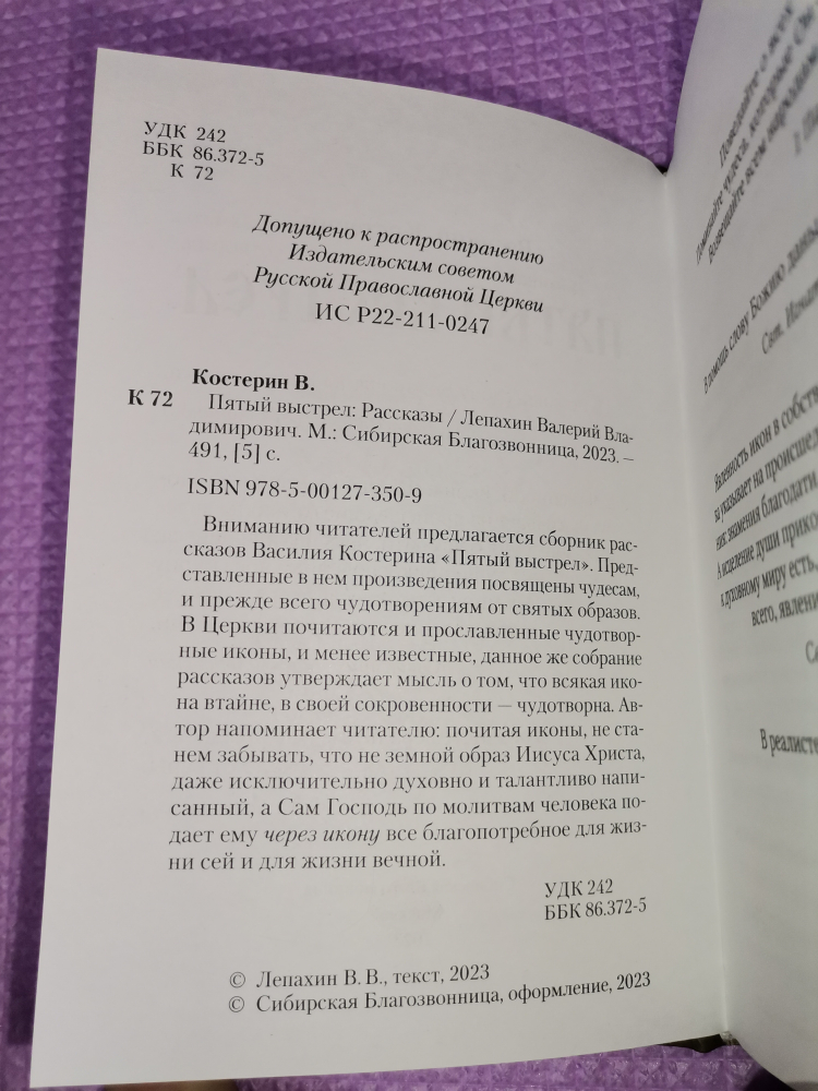Вниманию читателей предлагается сборник рассказов Василия Костерина "Пятый выстрел". Представленные в нем произведения посвящены чудесам, и прежде всего чудотворениям от святых образов. В Церкви почитаются и прославленные чудотворные иконы, и менее известные, данное же собрание рассказов утверждает мысль о том, что всякая икона втайне, в своей сокровенности - чудотворна. Автор напоминает читателю: почитая иконы, не станем забывать, что не земной образ Иисуса Христа, даже исключительно духовно и талантливо написанный, а Сам Господь по молитвам человека подает ему через икону все благопотребное для жизни сей и для жизни вечной.