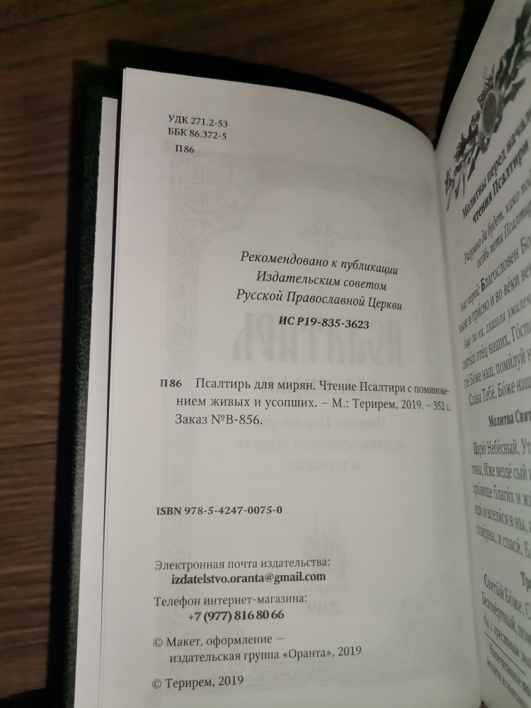 В настоящем издании Псалтирь для мирян, напечатанная стандартным гражданским шрифтом, дополнена заупокойной литией, совершаемой мирянином дома и на кладбище, а также указанием о чтении Псалтири по усопшему.