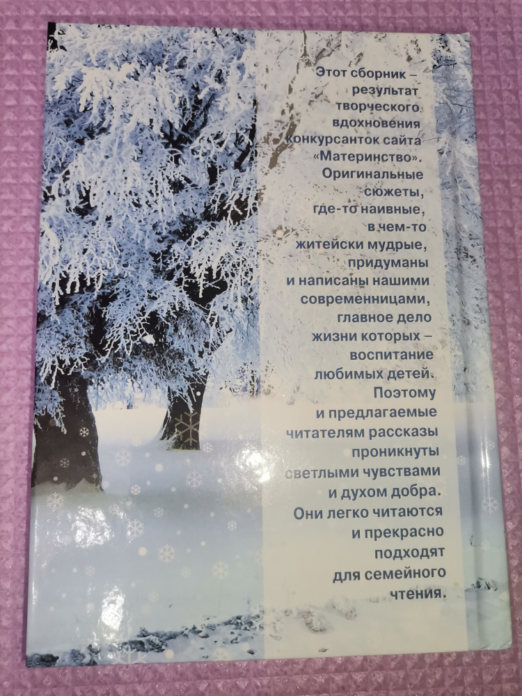 Этот сборник - результат творческого вдохновения конкурсанток сайта "Материнство". Оригинальные, нестандартные сюжеты, где-то наивные, в чем-то житейски мудрые, придуманы и написаны нашими современницами, главное дело жизни которых - воспитание любимых детей. Поэтому и предлагаемые читателям рассказы проникнуты светлыми чувствами и духом добра. Они легко читаются и прекрасно подходят для семейного чтения