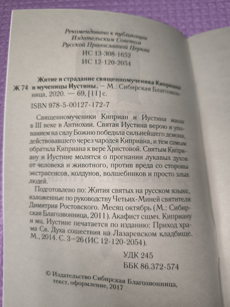 Святые священномученики Киприан и Иустиниа жили в III веке в Антихонии. Святая Иустина верою и упованием на силу Божию победила сильнейшего демона, действовавшего через чародея Киприана, и тем самым обратила Киприана к вере Христовой. Святым священномученикам Киприану и Иустине молятся о прогнании лукавых духов от человека и животного, против вреда от стороны экстрасенсов, колдунов, волшебников и просто злых людей. Подготовлено по: "Жития святых на русском языке, изложенные по руководству Четьих-Миней святителя Димитрия Ростовского. Месяц октябрь".