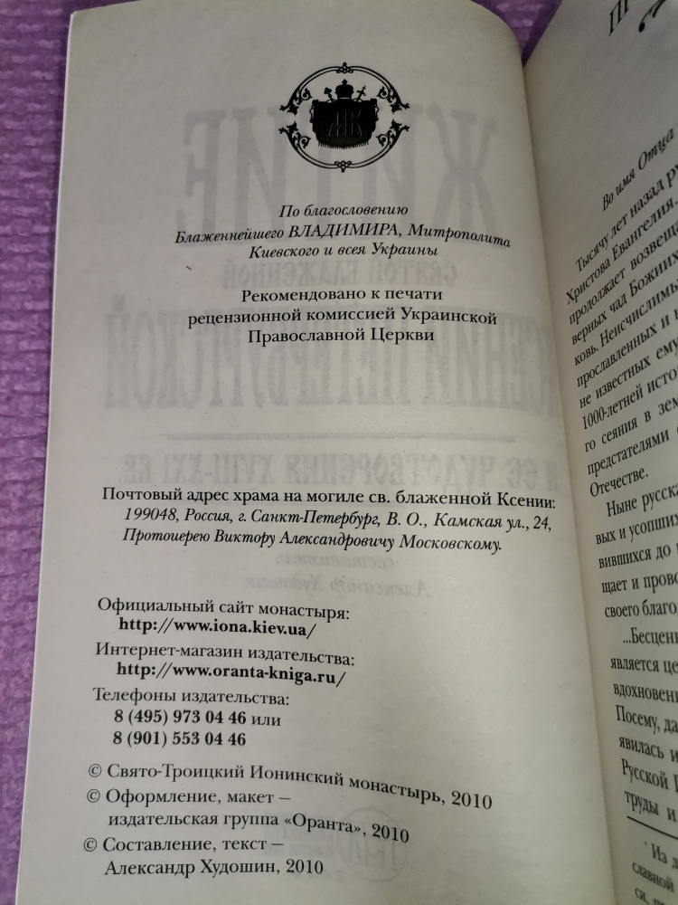 Житие святой блаженной Ксении Петербургской и рассказы о случаях благодатной помощи, чудесных исцелениях по её молитвам в наше время.