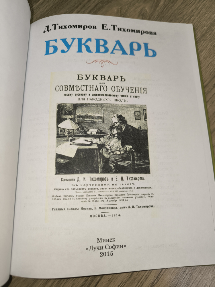 "Букварь для совместного обучения письму, русскому и церковнославянскому чтению и счёту" (он же - "Букварь Тихомирова") впервые был издан в 1872 году. Он стал одной из самых распространенных книг, по которой дети христиан постигали азы грамоты и счета, учились понимать красоту и богатство родного языка, знакомились с главными праздниками православных христиан. Букварь выдержал 160 изданий и вышел тиражом более 5 млн. экземпляров.