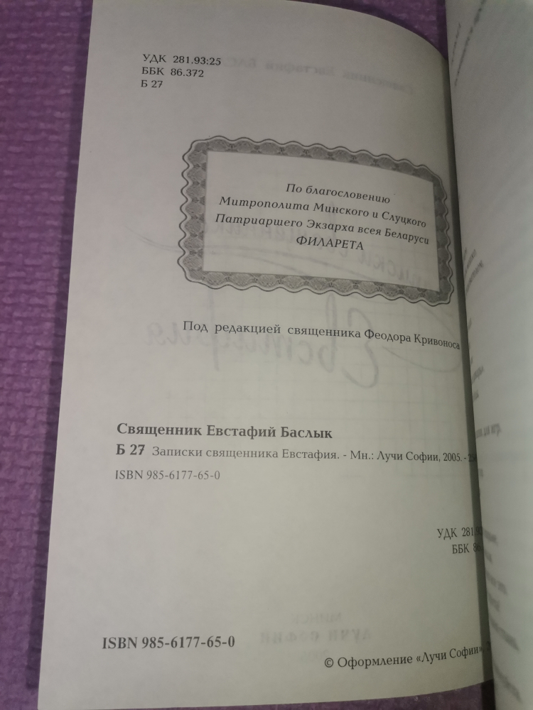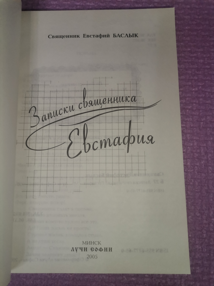 Протоиерей Евстафий Баслык (1902-1970) служил в Смоленской епархии, прожил трудную жизнь, вместившую в себя тюрьму и каторгу, и оставил благодарную память в сердцах прихожан. "Жизнь моя проходила в сложных политических и личных условиях. Приходилось соприкасаться со многими интересными людьми, явлениями. Были в моей жизни периоды радости, удовлетворения. Но больше было напряженного труда, исполнения долга, душевной борьбы, неудовлетворенности существующей действительностью", - пишет батюшка. В воспоминаниях нашли отражение как факты его биографии, так и явления общегосударственного и церковного порядка, страницы окружающей многообразной жизни. "Записки" впечатляют своей непосредственностью, простотой и при этом создают масштабную картину эпохи.