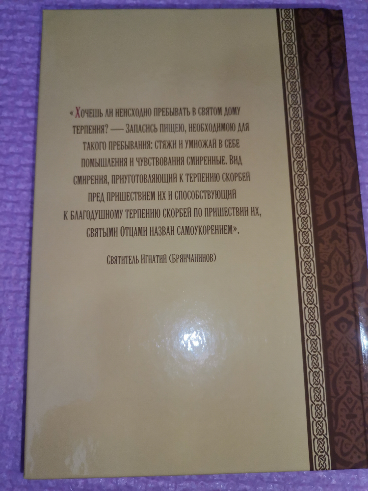 Надеемся, что этот небольшой труд поможет многим из нас научиться одной из важнейших христианских добродетелей - самоукорению, от которого родится терпение.