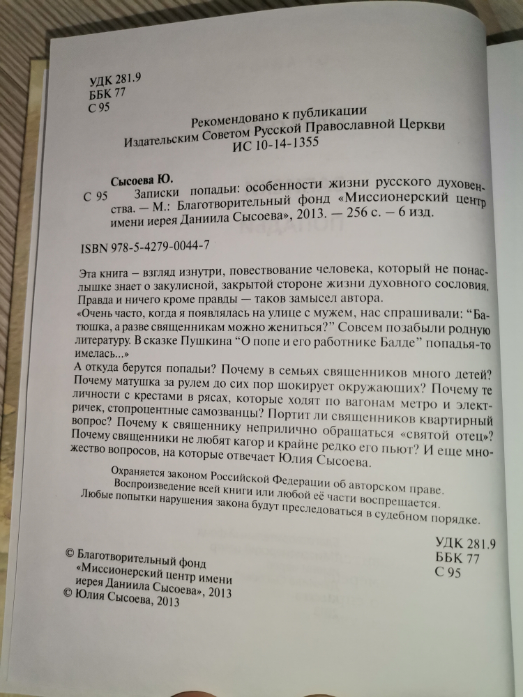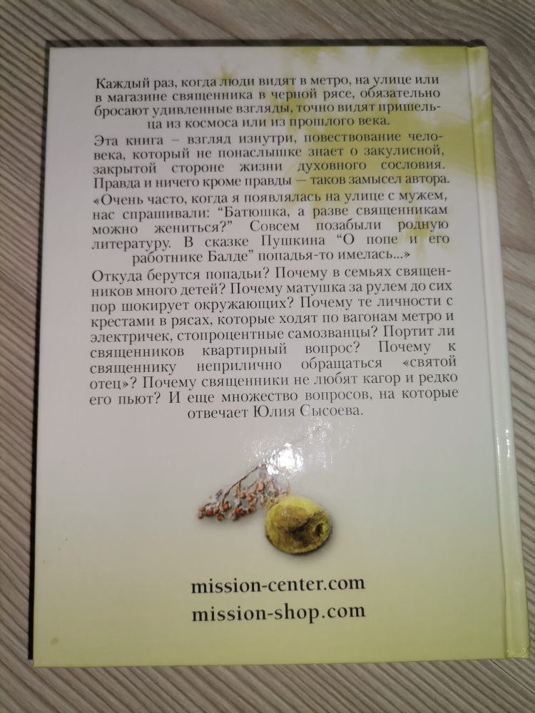 Эта книга - взгляд изнутри, повествование человека, который не понаслышке знает о закулисной, закрытой стороне жизни духовного сословия. Правда и ничего кроме правды - таков замысел автора. "Очень часто, когда я появлялась на улице с мужем, нас спрашивали: "Батюшка, а разве священникам можно жениться?" Совсем позабыли родную литературу. В сказке Пушкина "О попе и его работнике Балде" попадья-то имелась..."