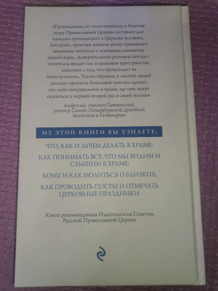 Из этой книги вы узнаете, что и как делать в храме; как понимать все, что мы видим и слышим в храме; кому и как молиться о близких; как проводить посты и отмечать церковные праздники. Эту книгу принципиально отличает от других современный понятный формат подачи материала, одобренный и получивший высокую оценку священнослужителей. Рекомендовано Издательским Советом Русской Православной Церкви.