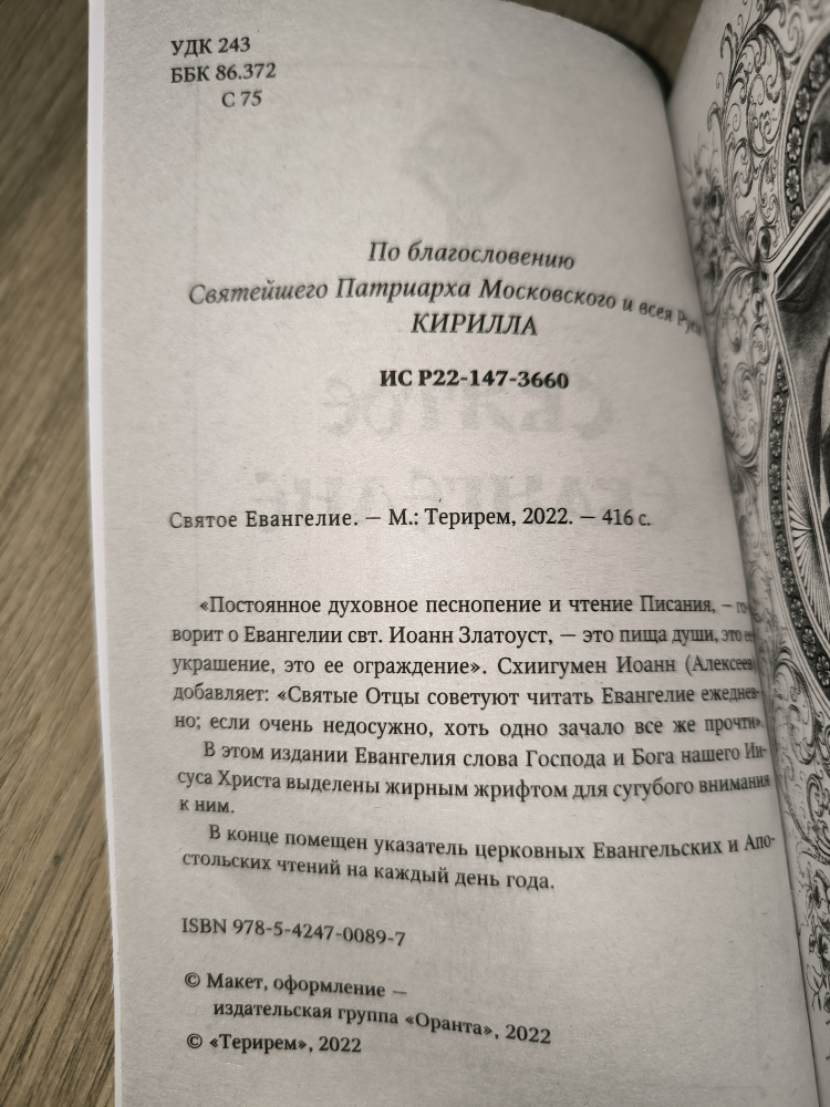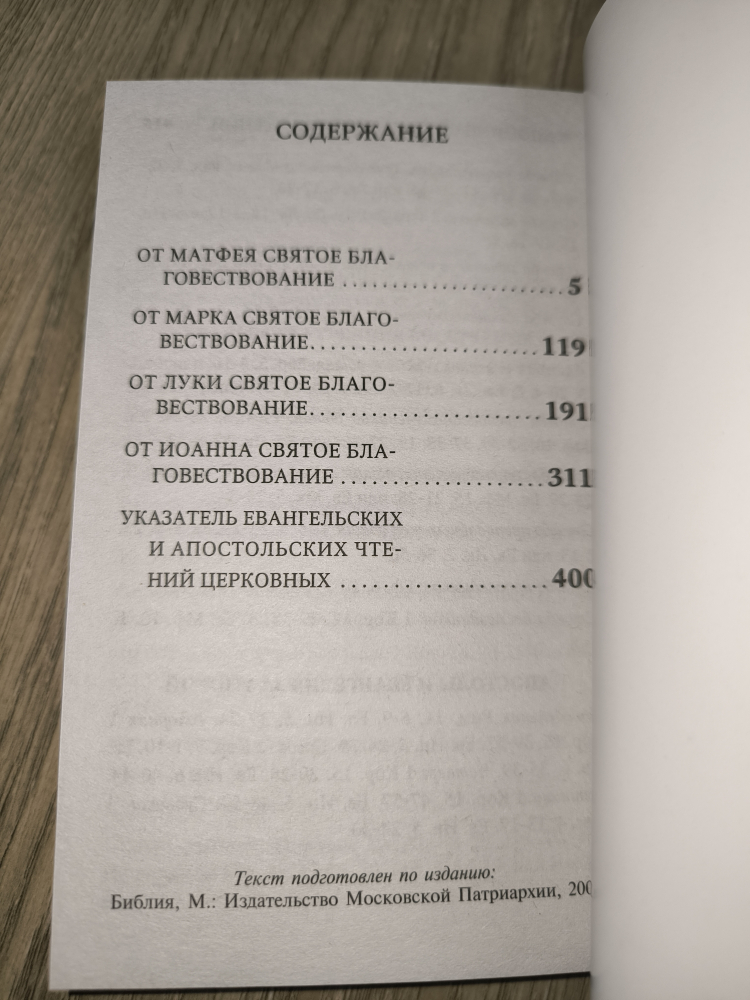 В конце книги помещен указатель церковных Евангельских и Апостольских чтений на каждый день года.