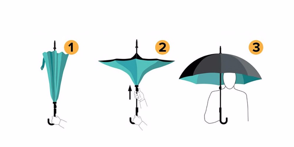 - Зонт складывается мокрой стороной внутрь и остаётся сухим;